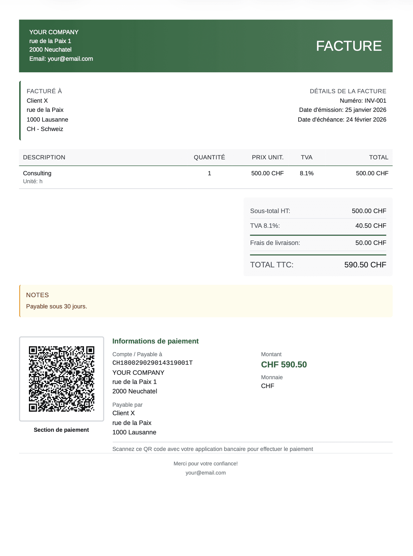 Avec SwissInvoice Generator