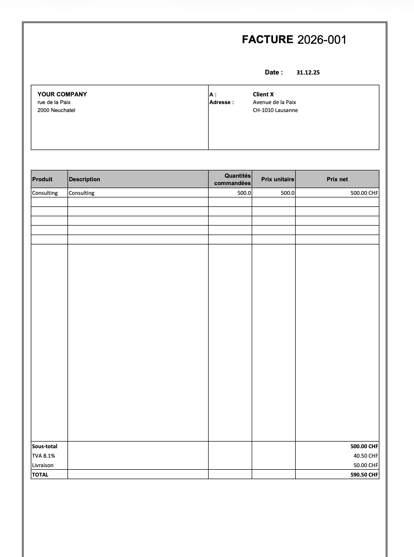 Génération automatique de factures conformes au standard suisse SPC 0200